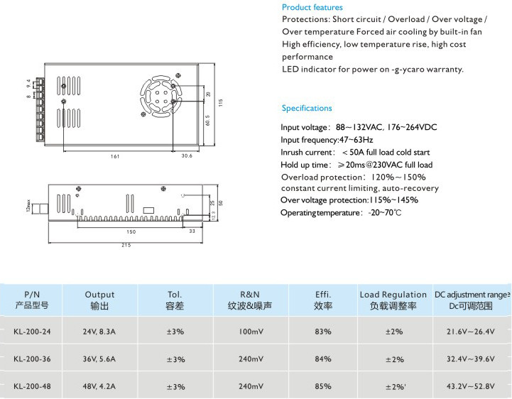 高效率、低溫升、高性價比 適用于LED顯示、工業(yè)控制 輸入電壓:88-132VAC,176-264VAC 輸入頻率:47~63Hz 沖擊電流:<50A滿載冷態(tài) 保持時間:≥20ms@230VAC滿載 過載保護(hù):120%-150%自動恢復(fù)限;限流保護(hù),自動恢復(fù) 過壓保護(hù):115%~145% 運(yùn)行溫度:-20-70℃" />